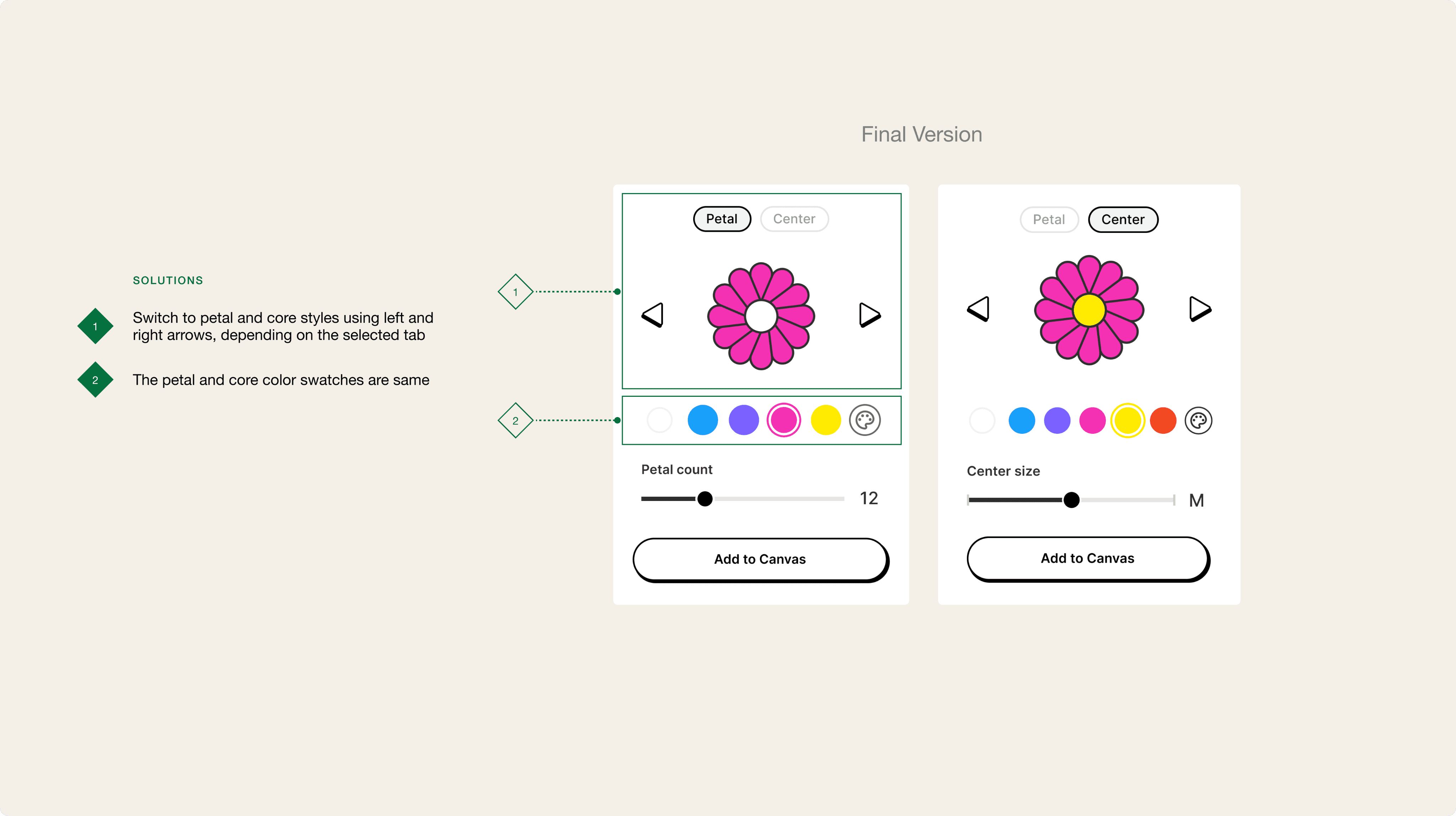 I designed, developed, and launched Petals, a Figma plugin that generates custom vector flowers with different petal styles and color options