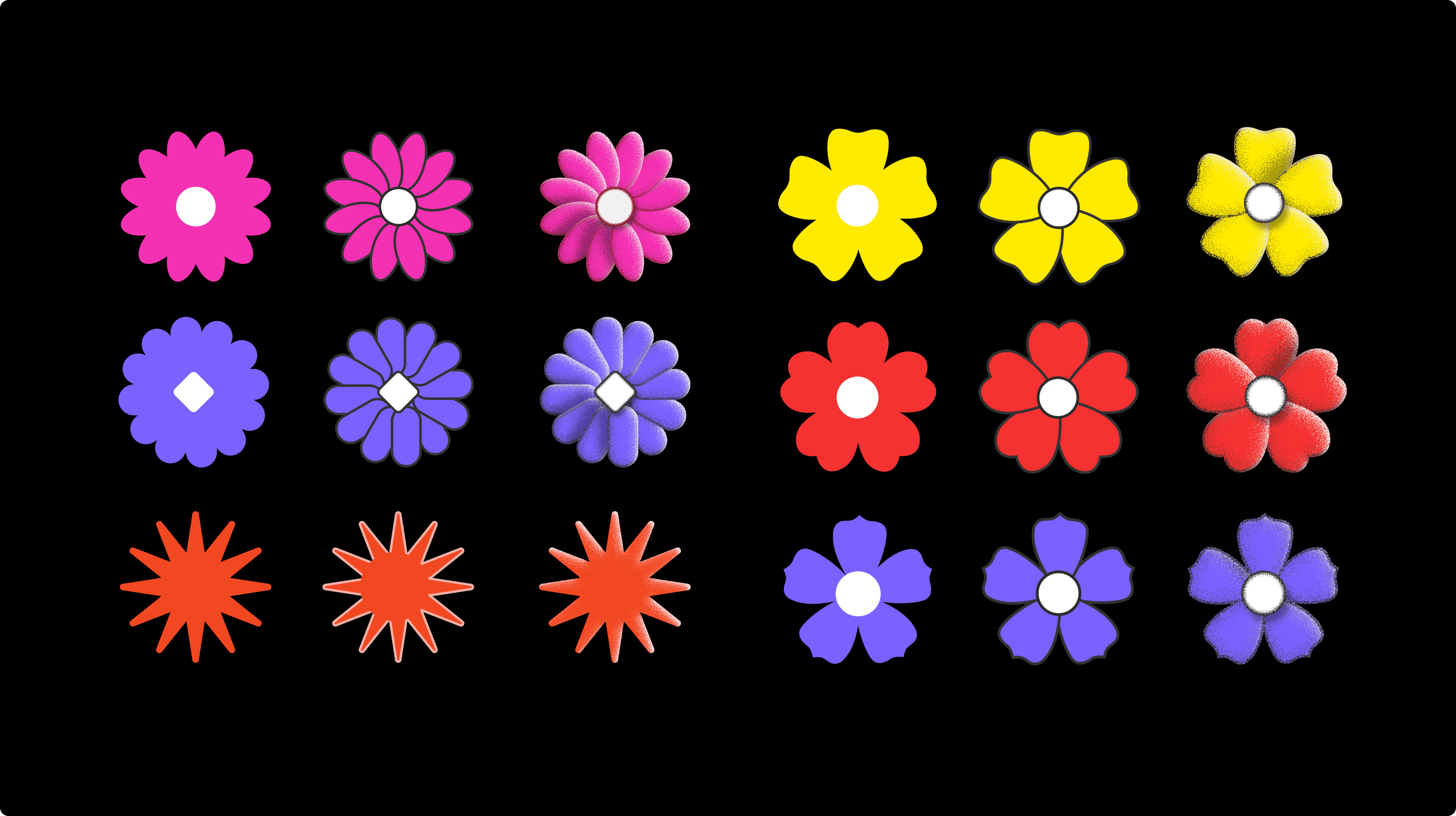 These vector flowers can be used in illustrations, backgrounds, brand elements, and more.